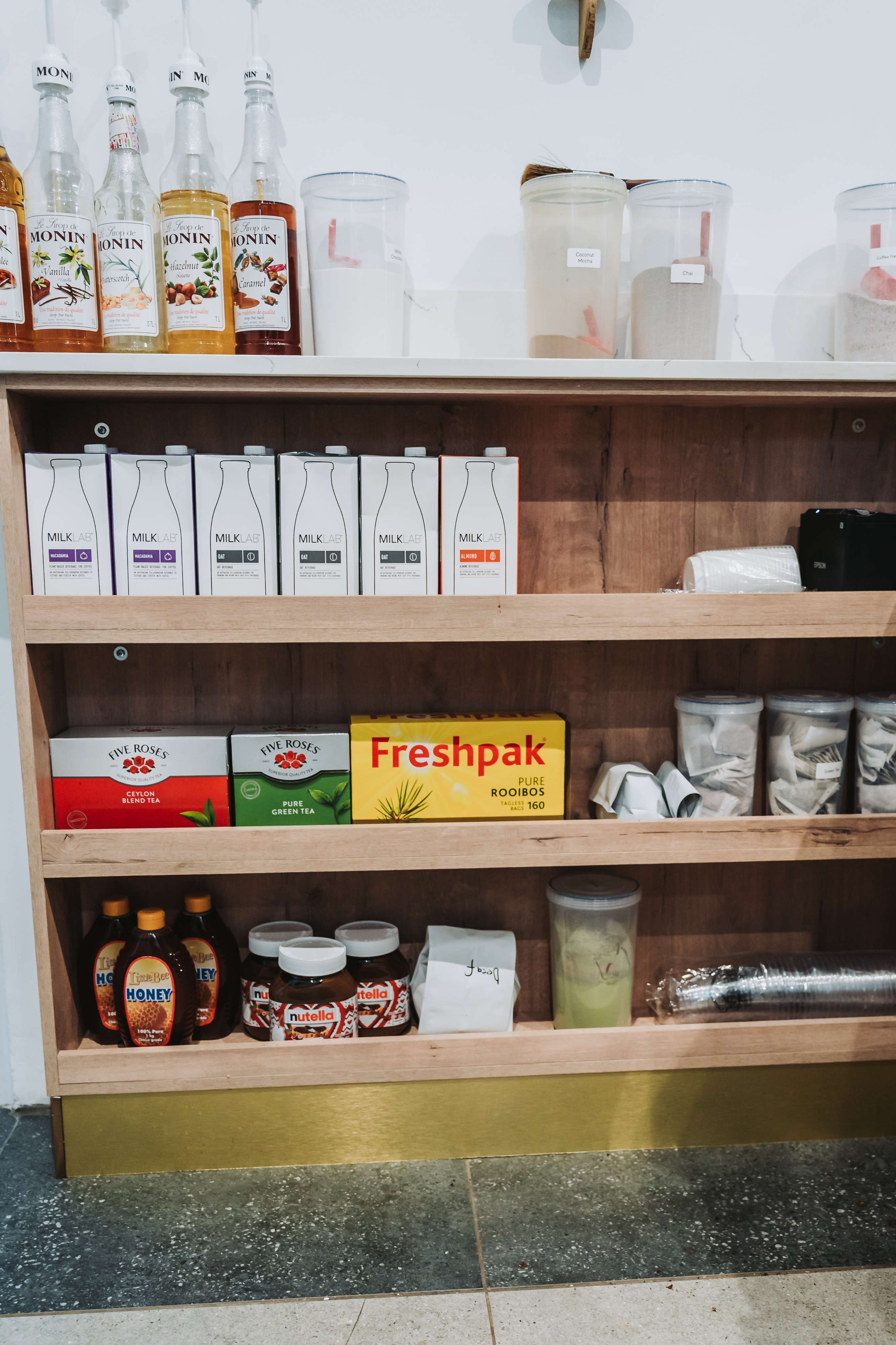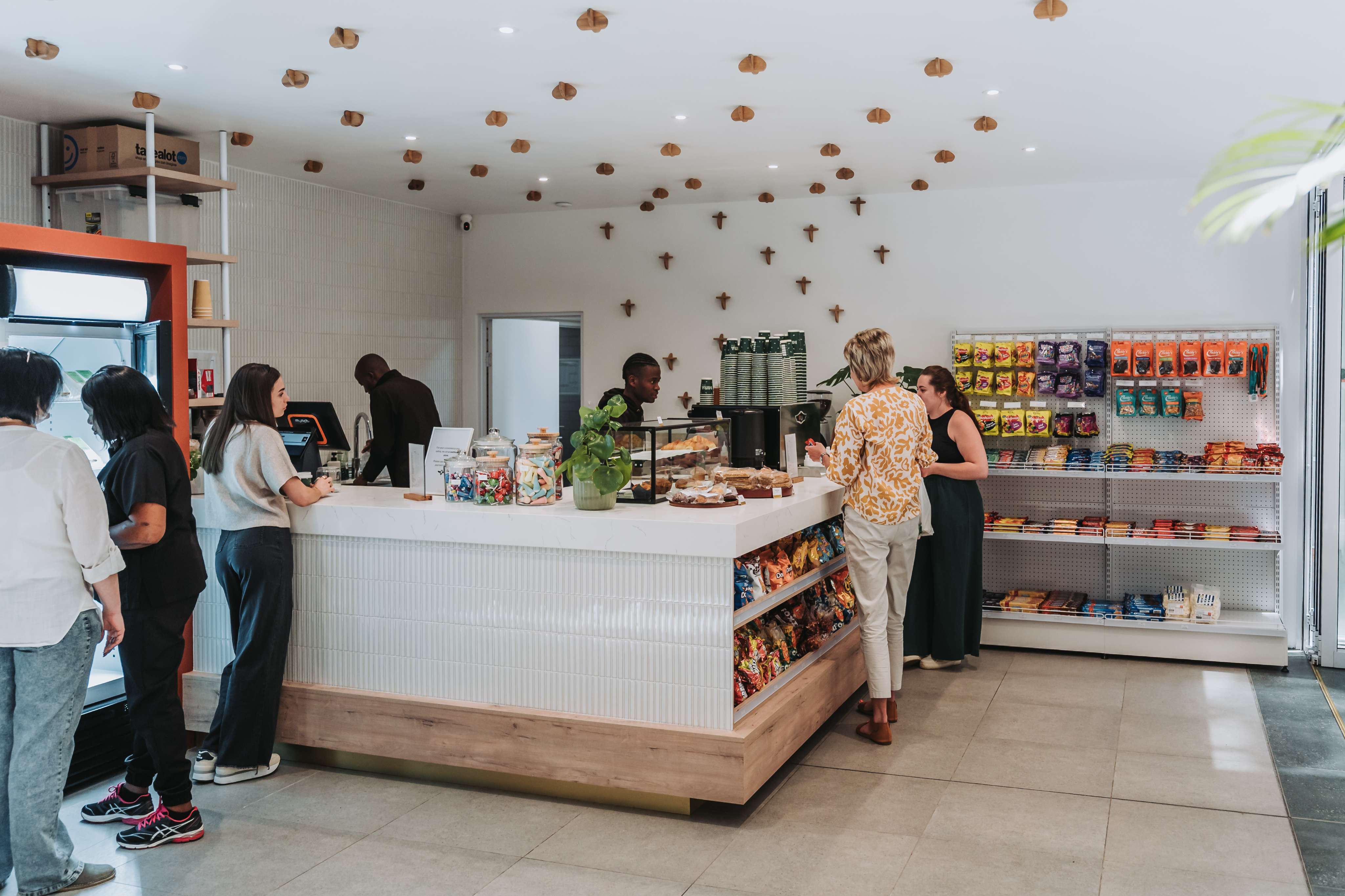 From scratch, we as Rustic-Eco built the new Mira Coffee Shop situated in Centurion. We pulled out all of the stops from gold homapal plinths, Eezi Quartz Countertops, PG Bison Boards for the build-in-cupboards, custom mosaic tiles for the feature walls, white-oak bees for the wall and even a terracotta fridge for our happy clients. We built and fitted all of the shopfitting for this new coffee shop including all of the carpentry and joinery.
